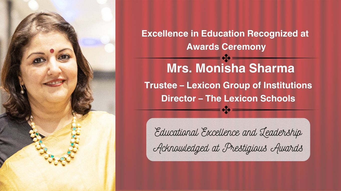 The Director of The Lexicon Schools and The Lexicon Rainbow School, Mrs. Monisha Sharma, was felicitated with the Award for Excellence in Education for her innovative pedagogy and unique teaching methodologies.
