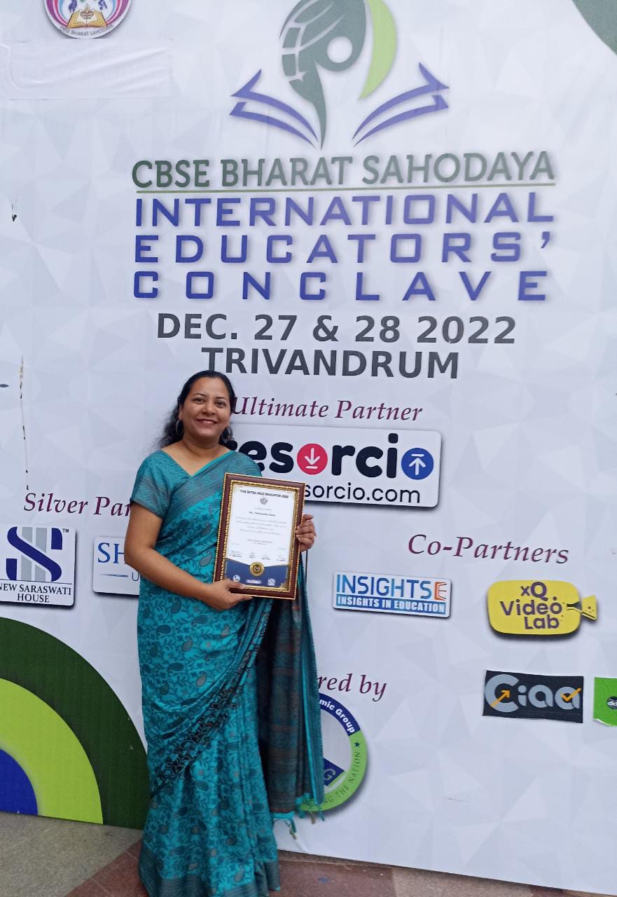 Mrs Petronella Eates, Principal, The Lexicon International School, Wagholi was conferred with the Extra Mile Educator Award 2022 at the CBSE Bharat Sahodaya International Educators' Conclave held in Trivandrum.